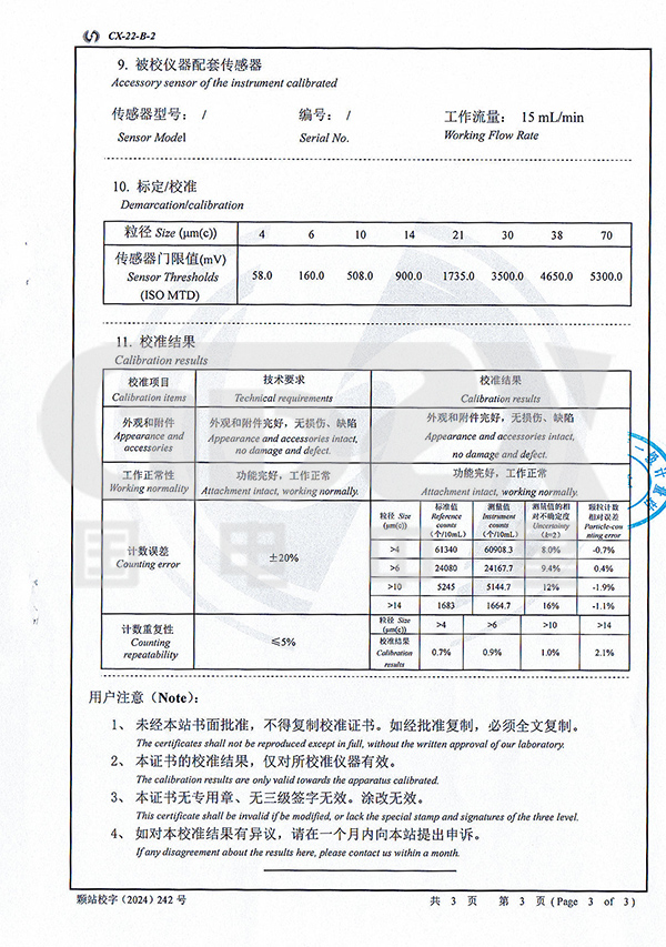 9)內(nèi)置數(shù)據(jù)分析系統(tǒng),一次測試可以給出所有標(biāo)準(zhǔn)的測試數(shù)據(jù)和污染度等級。