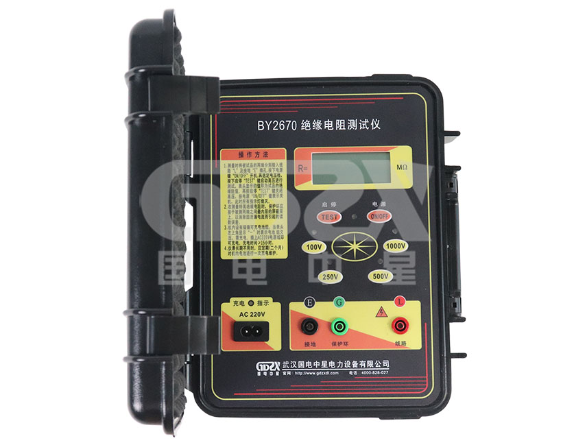 BY2670絕緣電阻測試儀由中大規模集成電路組成。本表輸出功率大,短路電流值高,輸出電壓等級多(每種機型有四個電壓等級)。工作原理為由機內電池作為電源經DC/DC變換產生的直流高壓由E極出經被測試品到達L極,從而產生一個從E到L極的電流,經過I/V變換經除法器完成運算直接將被測的絕緣電阻值由LCD顯示出來。是電力、郵電、通信、機電安裝和維修以及利用電力作為工業動力或能源的工業企業部門常用而必不可少的儀表。它適用于測量各種絕緣材料的電阻值及變壓器、電機、電纜及電器設備等的絕緣電阻。